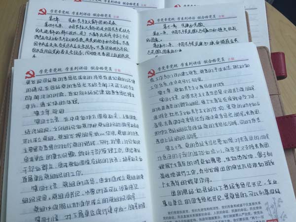 近期,中智財(cái)務(wù)咨詢(xún)有限公司為深化“兩學(xué)一做”學(xué)習(xí)教育,提高黨員干部對(duì)黨的全面認(rèn)識(shí),為黨員干部踐行“兩學(xué)一做”學(xué)習(xí)教育打基礎(chǔ),引導(dǎo)黨員逐條逐句通讀黨章黨規(guī)和系列講話,牢記入黨誓詞,牢記黨的宗旨, 中智財(cái)務(wù)公司黨支部要求黨員開(kāi)展“手抄黨章100天”活動(dòng)。每日抄寫(xiě)黨章原文150字左右,用100天時(shí)間抄寫(xiě)黨章全文。