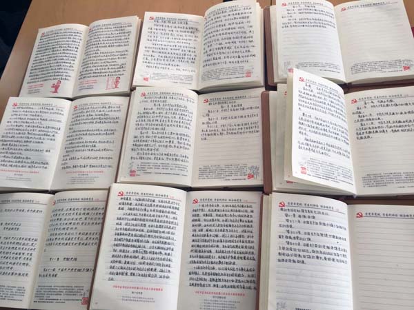 “手抄黨章,不僅鍛煉人的意志力、陶冶情操,還增強(qiáng)了共產(chǎn)黨員的使命感、責(zé)任感?!薄笆帜X并用,學(xué)思相隨。通過(guò)日積月累的堅(jiān)持,學(xué)用相長(zhǎng),黨員意識(shí)內(nèi)化于心,外化于行,不斷提高黨性修養(yǎng),永做合格黨員?!?br /> “手抄黨章,感悟黨性,以黨員的使命感,對(duì)黨忠誠(chéng),對(duì)企業(yè)感恩,對(duì)工作擔(dān)當(dāng),用信念的光和熱,為集團(tuán)十三五蓬勃發(fā)展貢獻(xiàn)力量!